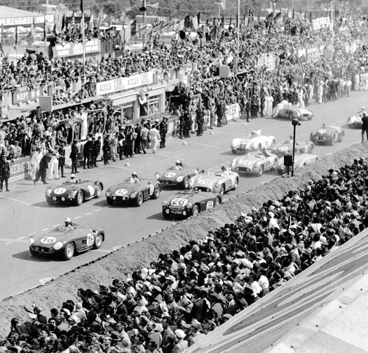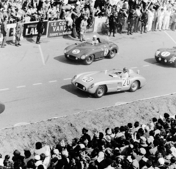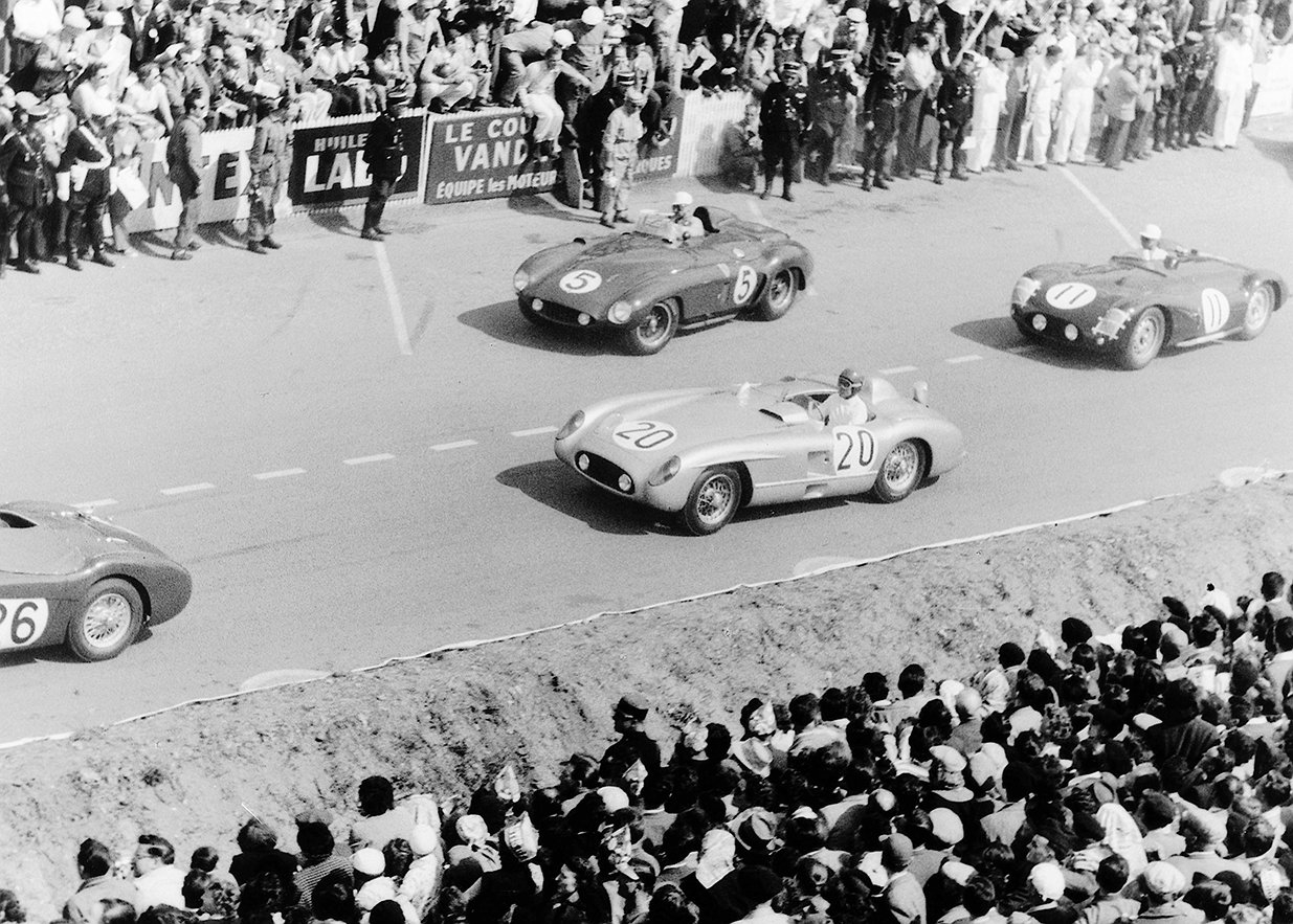 The drama at the Le Mans 24 Hours has three key players: Pierre ‘Levegh’ Bouillin, Mike Hawthorn and Lance Macklin. In short; Mike Hawthorn slammed on the brakes on his Jaguar D-Type. He had just overtaken Lance Macklin in an Austin Healey, who had nowhere to go. Macklin pulled to the left, which brought him straight in the path of Levegh in his Mercedes 300 SLR. The Mercedes launched itself on the back of the Healey and ended up in the crowd. Over 80 people died, it was the biggest disaster in motor racing ever.
