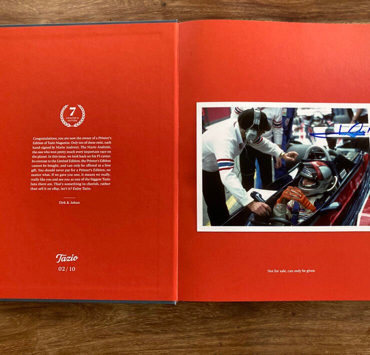 This is what we like to call ‘the special one’. Introducing, Tazio 7, the hardcover Limited Edition. Signed by one M. Andretti. Now available.