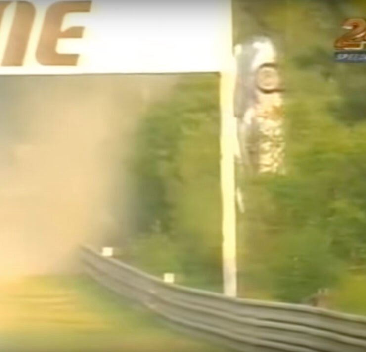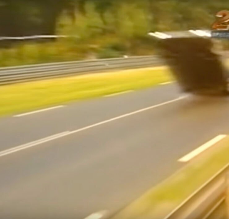 Seventy-five laps into the 1999 Le Mans 24 Hours, a Mercedes once again took flight in what became the most widely publicised takeoff of the three. On approach to the Indianapolis corner, Peter Dumbreck’s #5 CLR followed in the slipstream of a Toyota GT-One. The Mercedes took off once more for good measure, and additionally opted to send itself and its driver over the barrier and into the nearby forest.