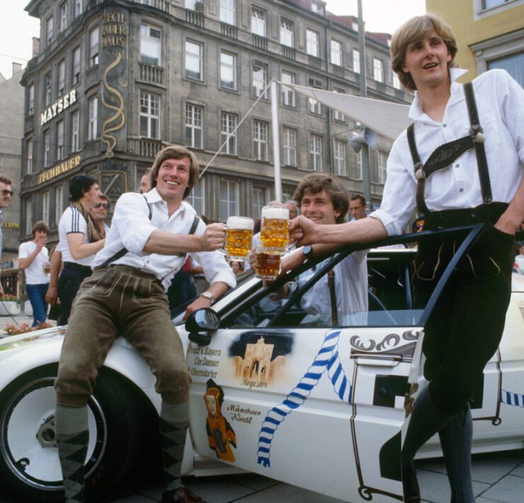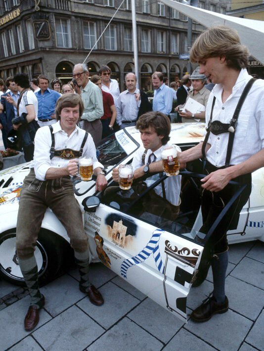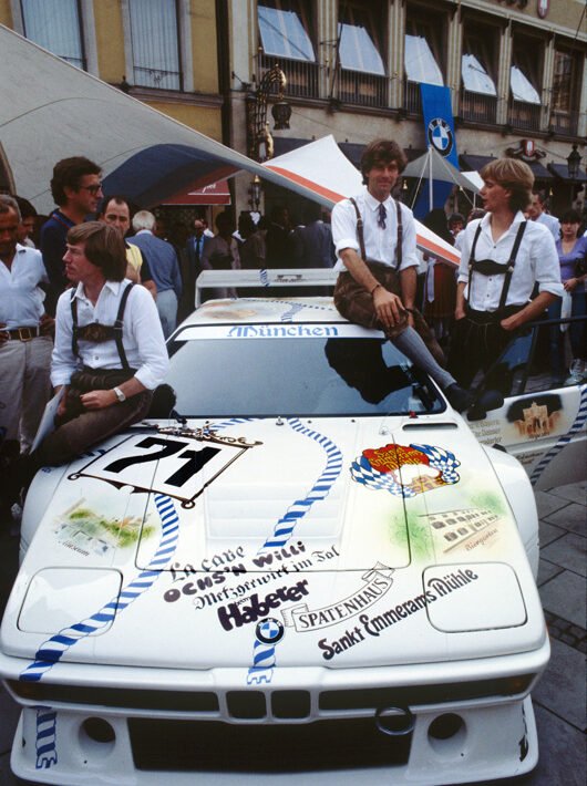 After that, the BMW M1 went on to race in endurance series under Group 4 regulations at first, and later in even wilder turbo form as a Group 5. These were mostly privateer efforts, but in 1983 BMW went to Le Mans with a very Munich-tinted project. There was the livery of the car first, known as ‘Münchener Wirtshaus’ referring to the Munich values… and the typical brewery houses. It honoured different landmarks and traditions in Munich and was painted by Walter Maurer, who had also done the actual paintwork on many of the art cars.