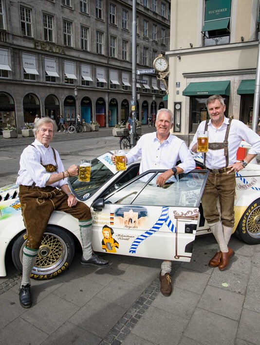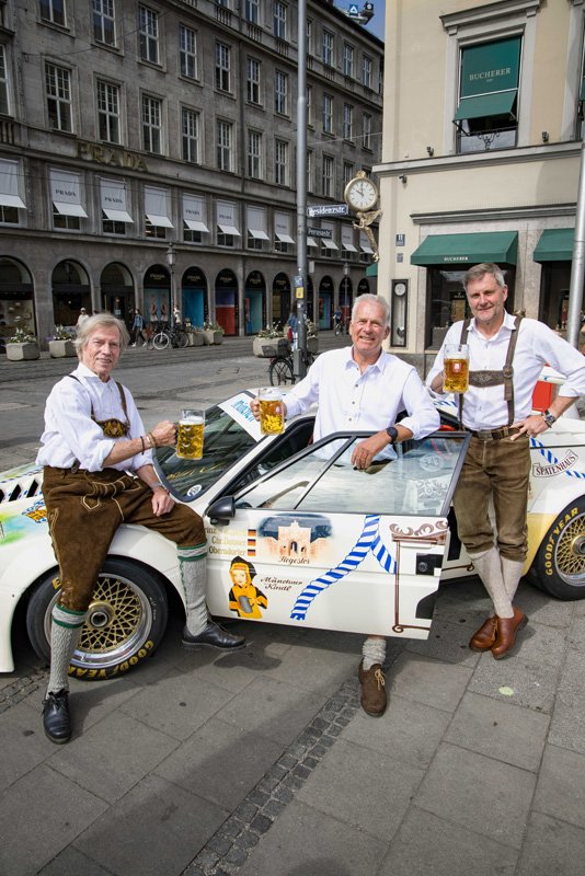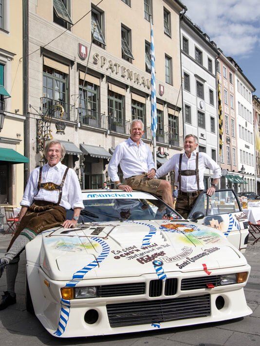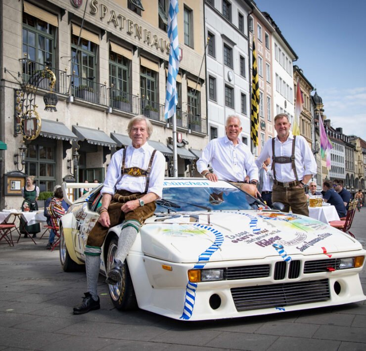 Also, there was an all-Bavarian crew. First of all, in the form of Prince Leopold von Bayern, and next to that there were Christian Danner and Peter Oberndorfer. The car was presented in front of the Spatenhaus in front of the opera building, and quite famously, BMW recreated the presentation photos prior to the original crew setting off for Le Mans Classic. The extra forty years on the clock may be visible to the crew, but the smiles and enthusiasm are similar.