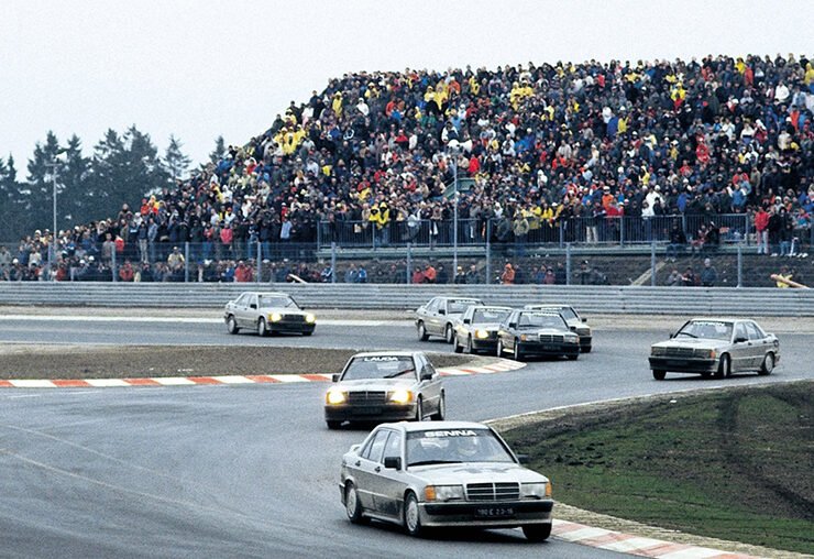 The cars were identical 190E 2.3-16 models, taken from the press presentation line-up and slightly tuned. “They weren’t race cars, not by a long shot”, then-technical responsible Gerhard Lepler told us for the story. A bolt-in roll cage was fitted, shorter final drive and Recaro seats were mounted at the front.
