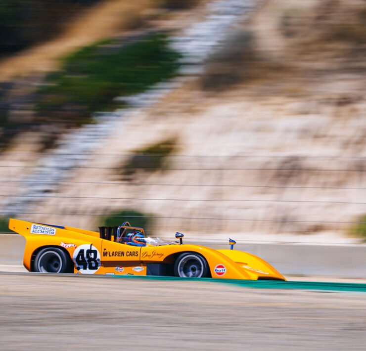 McLaren CEO Zak Brown has his own way of celebrating the 60th anniversary of the company he manages. By racing his 1970 McLaren M8D at Monterey Motor Sports Reunion.